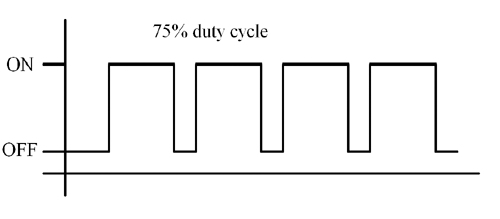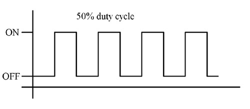 By changing the time that the switch is on vs off, we can change the average power being sent to the motor, and hence the motor speed. The ratio of on time to total time is the duty cycle. At 100% duty cycle, the motor is getting power all the time, and running at full speed. At 0% duty cycle, the motor is on 0% of the time. At any percentage in between, the motor is receiving power part of the time, and runs at a medium speed.