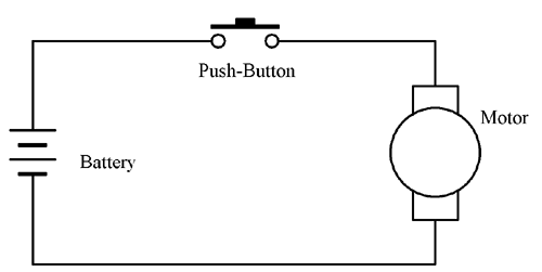Let's go back to the motor and switch. What if the switch were replaced with a momentary pushbutton?