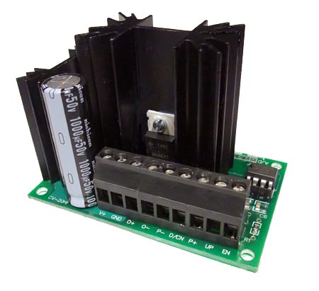 Control the speed of a DC motor using a potentiometer, 0-5V signal, push buttons or logic pulses from a microcontroller.